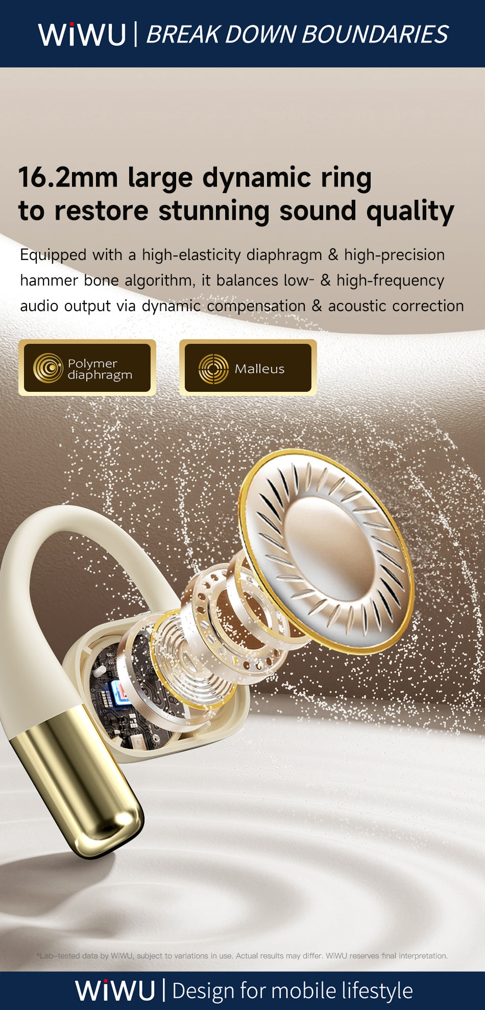 Overall, the WiWU O500 Open Wearable Stereo is a versatile audio solution that combines functionality with modern aesthetics, making it a must-have for music lovers and active individuals alike. Whether you're working out, commuting, or enjoying a leisurely day, the O500 enhances your audio experience while keeping you connected to the world around you.